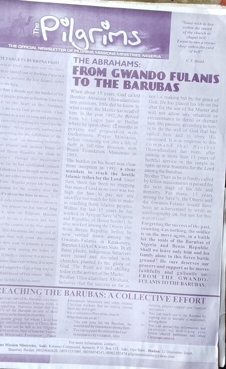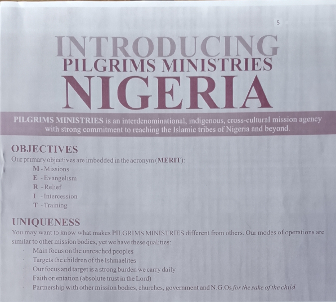 Pilgrims Ministries is an interdenominational, indigenous, cross-cultural mission agency with a strong commitment to reaching the Islamic tribes of Nigeria and beyond.